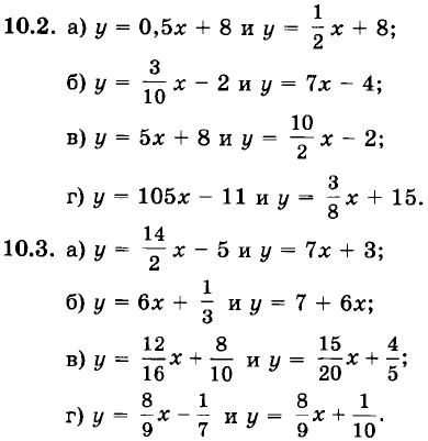 10.10. а) у = 2x + 3 и у = 3x + 2;