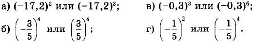 а) 2х3 = -250; б) 2х4 = 162; в) 5х5 = 160; г) 3х6 = 192. 16.20. Запишите число, представленное суммой разрядных слагаемых: а) 3 • 105 + 4 • 104 + 7 • 103 + 2 • 102 + 8 • 10 + 4; б) 8 • 106 + 9 • 103 + 5; в) 1 • 104 + 1 • 102 + 1; г) 3 • 105 + 5 • 103 + 4 • 102 + 8. 16.21. Запишите число в виде суммы разрядных слагаемых: а) 17285; б) 213149; в) 1495643; г) 75003400. 16.22. Найдите значения выражений: а) а2, (-а)2, -а2 при а = 1, а = -1, а = 0, а = 10; б) с2 + (-с)3 + с4 при с = 1, с = 0, с = 10, с = -1; в) b4, (-b)5, -b5 при ft = 1, b = 0, b = -1, b = 10; г) d4 - d2 + d + 1 при d = -1, d = 0, d = 1, d = 10. 16.23. Укажите, какое из чисел больше: