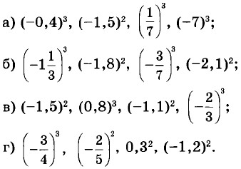 Глава 4. Степень с натуральным показателем и её свойства § 16. Таблица основных степеней (окончание)16.15. а) х2 + у2 ... 0; б) (а + 51)2 + (b2 - 13)2 ... 0; в) 5(а2 + b2) ... 0; г) -94(х + у)2 ... 0. 16.16. Используя таблицу степеней однозначных чисел, найдите b, если: а) b3 = 216; б) b5 = -32; в) b7 = 128; г) b3 = -343. 16.17. Используя таблицу степеней простых однозначных чисел, найдите m, если: а) 2m = 512; б) 5m = 625; в) 7m = 343; г) 3m = 729. 16.18. Найдите х, если: а) х4 = 16; б) х2 = 25; в) х4 = 81; г) х6 = 64.