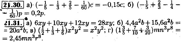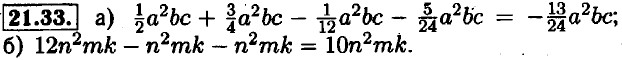 21.32. а) 21x4у4 - 8x4у4 - 2x4у4 - 3x4у4 = 8x4у4; б) 5znqn - 3znqn - znqn = znqn.