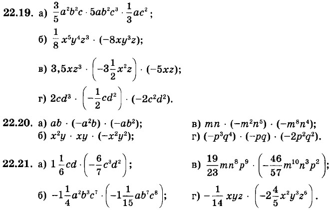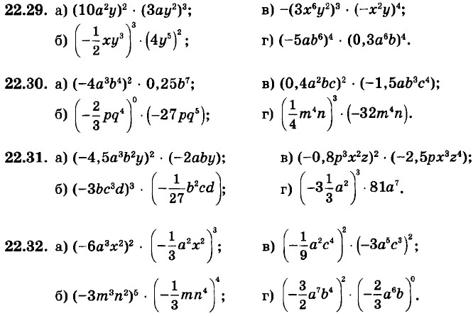 Глава 5. Одночлены. Арифметические операции над одночленами § 22. Умножение одночленов. Возведение одночлена в натуральную степеньУпростите выражение: