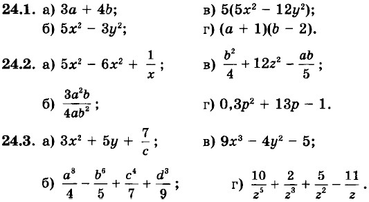 24.4. Даны одночлены: 5a; -4ab; 8а2; 12а; -2,5ab; -а2. Составьте из них: