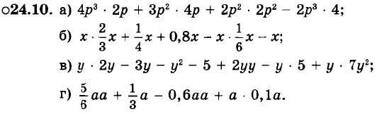 24.11. а) 2х • 4у - 3х • 2у - 0,2х • 5y + у • 5х - 5ху + 8ху;
