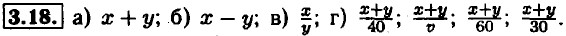 3.27. a) 6x; 6) 4у; в) 6x + 4у; г) 6x - 4y. 3.28. a) x - 10; б) 5x; в) 6x - 60; r) 11x - 60. 3.29. a) υ + x; υ - x; 6) 3 • (υ + x) = 3υ + Зx; в) 3,5 • (υ - x) = 3,5υ - 3,5x; r) 3υ + 3x = 3,5υ - 3,5x. 3.30. а) числа x и у равны; б) число а в два раза больше числа 6; в) числа 2d и Зс равны; г) числа 6m и 11n равны. 3.31. а) число а на 7 меньше чем b; б) если к числу а прибавить 2, а к b 8, то их суммы равны; в) разность чисел а и b равна 3; г) разность чисел а и 3 равна сумме b и 1. 3.32. а) число равно сумме чисел bd и 2; б) число у в 7 раз больше суммы а; и 1; в) разность чисел Зn и 4 в 7 раз больше m; г) удвоенная разность x и 1 равняется утроенной сумме у и 1. 3.33. Пусть х квартир в первом доме.