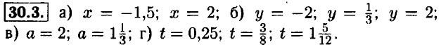 30.1. а) x = 0; x = 2; б) x = -1; x = -4; в) z = 0; 2 = 1,6; г) у = -2; у = 6.
