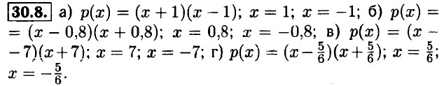 30.7. a) p(x) - (x - 2)(x + 2); 6) p(x) = (3 - 2x)(3 + 2x); в) p(x) = (x + 3)(x - 3); г) p(x) = (2 - 3x)(2 + 3x).