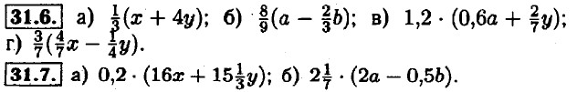 31.5. а) 2,4 • (х + 3у); б) 0,6 • (3а - 4b); в) 0,01 • (а + 3у); г) 0,25 • (5х - 7а).