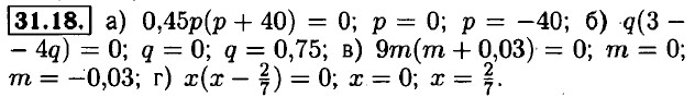 31.17. а) х(х - 3) = 0; х = 0; х = 3; б) а(а + 10) = 0; а = 0; а = -10; в) у(у - 5) = 0; у = 0; у = 5; г) b(b + 20) = 0; b = 0; b = -20.