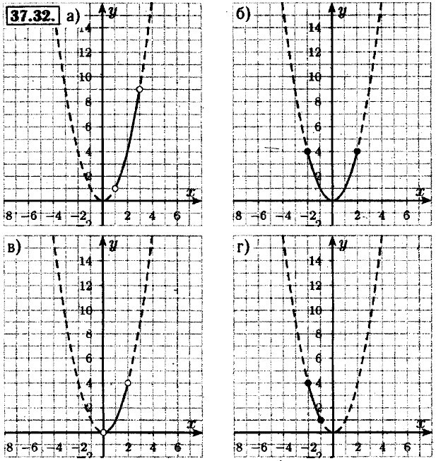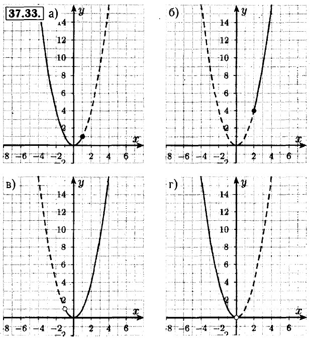 Глава 8. Функция у = х2 Функция у = х2 и её график37.1. а) 1; б) 9; в) 4; г) 0. 37.2. а) 1; б) 9; в) 4; г) 0. 37.3. а) х2 = 4; х = ±2; б) х2 = 6,25; х = ±2,5; в) х2 = 0; х = 0; г) х2 = 2,25; х = ±1,5. 37.4. а) -9; б) 0; в) -1; г) -16.