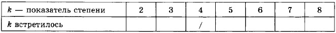Проверьте свой ответ! Мы получили таблицу распределения, в которой показатели степеней 3, 4, 5 и 6 встречаются одинаковое количество раз (по 5). Это почти равномерное распределение. При таком распределении говорить о моде было бы странно: ведь почти все данные находятся в одинаковом положении. Заметим, что столбец под числом 7 следует убрать, так как показатель степени 7 не встретился ни разу: нет данных — нет столбца.