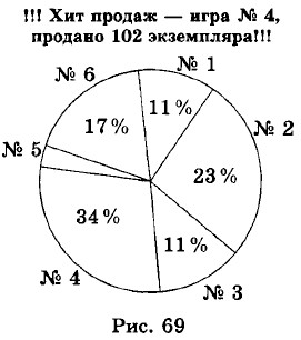 В интернет-магазине начали продавать новые компьютерные игры № 1—6. По результатам продаж через неделю на сайте магазина была размещена диаграмма (рис. 69).