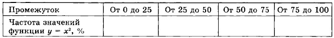 в) Заполните сгруппированную таблицу распределения частот значений функции у = х2: