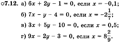 7.13. Для каждого из данных линейных уравнений найдите значение x, соответствующее заданному значению у: