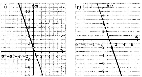 в) Функция возрастает, значит, наименьшее значение в начале промежутка, а наибольшее в конце. Наибольшее равно 2,5 • 1 - 4 = -1,5, 2,5 • 2 - 4 = 1.