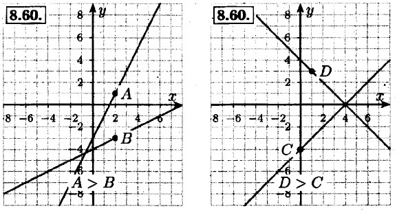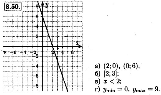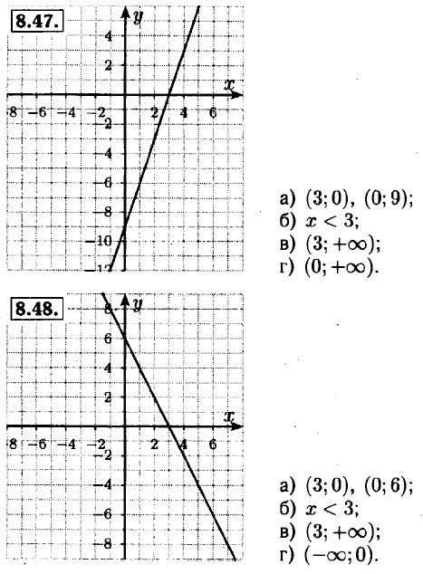 8.51. а) у = 7,5x + 45 ⇒ 7,5x + 45 = 0 ⇒ у = 7,5 • 0 + 45 ⇒ x = -6; у = 45 ⇒ (-6; 0), (0; 45);