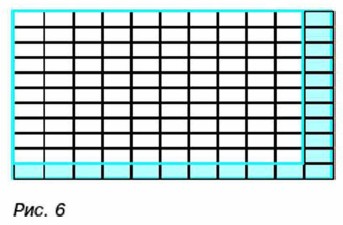 По формуле площади прямоугольника находим, что S = ab. После увеличения длины и ширины прямоугольника на 10% длина будет равна а + 0,1а = 1,1а см, а ширина b + 0.1b = 1,1b см. Тогда площадь будет равна 1,1а • 1,1b = 1,21ab см2, т. е. увеличится на 1,21 ab - ab = 0,21 ab см2. Имеем Этот ответ хорошо поясняет рисунок 6. Из рисунка видно, что к имеющимся 100 малым прямоугольникам, площадь каждого из которых составляет 1% от площади прямоугольника, добавляется ещё 21 малый прямоугольник.