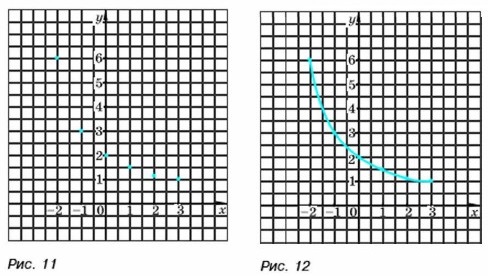 Каждую из найденных нар значений х и у изобразим точкой в координатной плоскости, считая значение д: абсциссой, а соответствующее значение у ординатой (рис. 11). Выбирая другие значения х из промежутка от -2 до 3 и вычисляя соответствующие им значения у по формуле