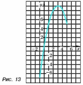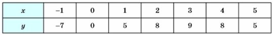 Отметим в координатной плоскости точки, координаты которых указаны в таблице. Соединим их плавной линией (рис. 13). Получим график функции, заданной формулой у = х(6 - х), где -1 ≤ х ≤5. Чем больше отметим точек, принадлежащих графику, и чем плотнее они будут расположены, тем точнее будет построен график функции. С помощью графика функции по значению аргумента можно найти соответствующее значение функции. Можно также решить обратную задачу: но значению функции найти те значения аргумента, которым оно соответствует. Пример 2. По графику функции, изображённому на рисунке 14, найдём: а) значение функции при х = 3; б) значения х, при которых значение функции равно 7.