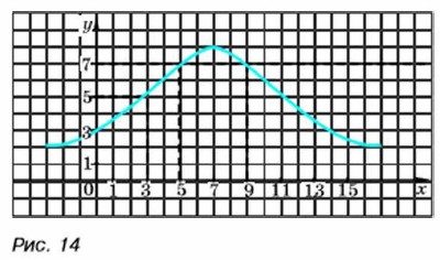 б) Проведём через точку оси у с ординатой 7 прямую, параллельную оси х. Эта прямая пересекает график в двух точках: с координатами (5; 7) и (9; 7). Значит, функция принимает значение, равное 7, при х = 5 и при х = 9.