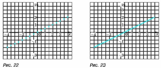 Отметим в координатной плоскости точки, координаты которых помещены в таблице (рис. 22). Можно заметить, что все отмеченные точки принадлежат некоторой прямой, проходящей через начало координат. Проведём эту прямую. Получим график функции у = 0,5x (рис. 23).