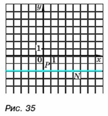 Любому значению х соответствует одно и то же значение y, равное -2. Отметим две какие-нибудь точки с ординатой -2, например Р(0; -2) и N(4; -2), и проведём через них прямую (рис. 35). Прямая РN — график линейной функции у = -2.