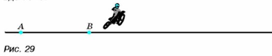 § 6. Линейная функция Линейная функция и её графикРассмотрим примеры функций.Пример 1. На шоссе расположены пункты A и В, удаленные друг от друга на 20 км (рис. 29). Мотоциклист выехал из пункта В в направлении, противоположном А, со скоростью 50 км/ч. За t ч мотоциклист проедет 50t км и будет находиться от А на расстоянии 50t + 20 км. Если обозначить буквой s расстояние (в километрах) мотоциклиста до пункта A, то зависимость этого расстояния от времени движения можно выразить формулой s = 50t + 20, где t ≥ 0.