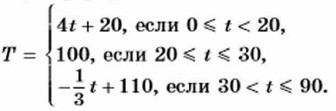 345. Изменение температуры Т (в градусах Цельсия) воды в баке описано с помощью формул: