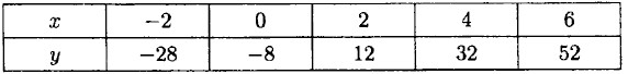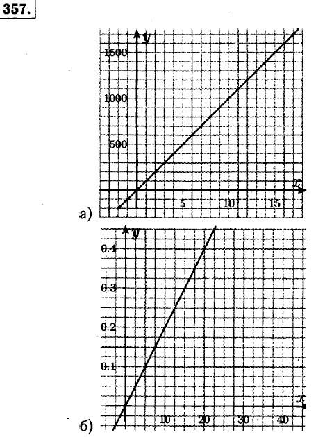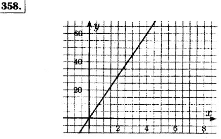 а) если х = 3 ч, то у = 45 км; если х = 3 ч 40 мин, то у = 55 км; б) если у = 50 км, то х ≈ 3,5 ч. 359. 360. у = 0,2х - 4 ⇒ 0,2х = у + 4 ⇒ х = 5у + 20: х = -25 ⇒ у = 0,2 • (-25) - 4 = -5 - 4 = -9; х = -12 ⇒ у = 0,2 • (-12) - 4 = -2,4 - 4 = -6,4; х = 45 ⇒ y = 0,2 • 45 - 4 = 9 - 4 = 5; x = 60 ⇒ у = 0,2 • 60 - 4 = 12 - 4 = 8; у = 0 ⇒ x - 5 • 0 + 20 = 20; у = 1 ⇒ x = 5 • 1 + 20 - 25. а) у = х ⇒ х = 0,2х - 4 ⇒ 0,8х = -4 ⇒ х -5. Да, х = у = -5. б) у = -х, и х = -у ⇒ -х = 0,2х - 4 ⇒ 1,2х = 4 ⇒ х = 361. Зависимость является линейной, значит функцию можно задать формулой вида у = kх + b. а) Известны две точки (0; -8) и (2; 12). Значит -8 = k • 0 + b ⇒ b = -8, 12 = k ⇒ 2 + b ⇒12 = 2k - 8 ⇒ 2k = 20 ⇒ k = 10. Уравнение прямой у - 10х - 8: при х = -2 ⇒ у = -2 • (10) - 8 = -28; при х = 4 ⇒ у = 10 • 4 - 8 = 32; при х = 6 ⇒ у = 10 • 6 - 8 = 52.