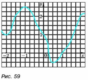 452. Какой цифрой может оканчиваться: а) квадрат натурального числа; б) четвёртая степень натурального числа? 453. Известно, что график функции у = kх + 5,4 проходит через точку A(3,7; -2). Найдите значение коэффициента k. 454. На рисунке 59 построен график некоторой функции. Используя график, найдите: а) значение у при х, равном -2; -1; 2; б) значения х, при которых у равно -0,5; 2.