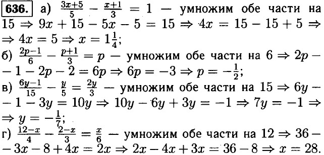 639. Периметр треугольника 44 см. Одна из его сторон равна 2х, тогда вторая 2х + 4 и третья х. Значит 2x + 2x + 4 + x = 44 ⇒ 5x = 40 ⇒ x = 8 ⇒ 2x = 16 ⇒ 2x + 4 = 20. Ответ: 20 см 16 см и 8 см. 640. Пусть площадь одного из них 1,5x, тогда площадь второго х и площадь третьего 1,5x + 6, Значит 166 = 1,5x + x + 1,5x + б ⇒ 4х = 160 ⇒ x = 40 ⇒ 1,5x = 60 ⇒ 1,5x + 6 = 66. Ответ: 40 м2, 60 м2 и 66 м2.