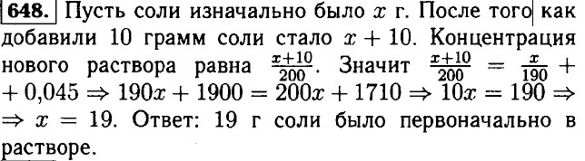 642. Пусть во втором сарае было х т сена, тогда в первом 3? т. Значит 643. Пусть бригада должна была скосить луг за n дней. Тогда площадь луга равна 50n. Значит 60 • (n - 1) = 50n ⇒ 60n - 60 = 50n ⇒ 10n = 60 ⇒ n = 6 ⇒ 50n = 300. Ответ: 300 га. 644. Пусть спортсменка с первоначальной скоростью пробегала дистанцию за t мин. Тогда длина дистанции равна 250t м. Значит 250t = 300 • (t - 1) ⇒ 200t = 300t - 300 ⇒ 50t = 300 ⇒ t = 6 ⇒ 250t = 1500. Ответ: длина дистанции 1500 метров. 645. Пусть туристы затратили на путь от турбазы до привала t ч. Значит расстояние от турбазы до привала 4,5t. 15 мин = 0,25 ч. Значит 4,5t = 4 • (t + 0,25) ⇒ 4,5t = 4t + 1 ⇒ 0,5t = 1 ⇒ t = 2 ⇒ 4,5t = 9. Ответ: На расстоянии 9 км от тур базы был сделан привал. 646. Пусть мотоциклист догонит велосипедиста за t часов. Тогда велосипедист проедет 12* км. Значит 12t + 60 = 30t ⇒ 18t = 60 ⇒ t = 647. Пусть легковая машина догонит грузовую за t ч. Тогда грузовая машина пройдёт путь 60t. Значит 60t = 90 • (t - 2) ⇒ 60t = 90t - 180 ⇒ 30t = 180 ⇒ t = 6 ⇒ 60t = 360. Ответ: На расстоянии 360 км от пункта А легковая машина догонит грузовую.