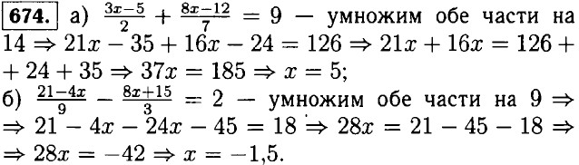 Домашние работы Вынесение общего множителя за скобки (окончание)664. а) х5 + х4 - х3 = х3 • (х2 + х - 1) = х3 • ((х + 1)х - 1) б) у7 - у5 - у2 = у2 • (у5 - у3 -1) = у2 • (у3 • (у2 - 1) - 1) в) а4 + а5 - а8 = а4 • (1 + а - а4) = а4 • (1 + а • (1 - а3)) г) -b10 - b15 - b20 = -b10(1 + b5 + b10) = -b10(1 + b5 • (1 + b5)). 665. а) 78 - 77 + 76 = 76 • (72 - 7 + 1) = 76 • (49 - 6) = 76 • 43; б) 213 - 210 - 29 = 29 • (24 - 2 - 1) = 29 • (16 - 3) = 29 • 13; в) 274 - 95 + 39 = 312 - 310 + 39 = 39 • (33 - 3 + 1) = 39 • (27 - 2) = 39 • 25; г) 164 - 213 - 45 = 216 - 213 - 210 = 210(26 - 23 - 1) = 210(64 - 8 - 1) = 210 • 55 = 29 • 110. 666. а) х3 - 3х2 + х = х • (х2 - 3х + 1); б) m2 - 2m3 -m4 = m • (1 - 2m - m2); в) 4а5 - 2а3 + а = а • (4а4 - 2а2 + 1); г) 6х2 - 4х3 + 10х4 = 2х2 • (3 - 2х + 5х2); д) 15а3 - 9а2 + 6а = 3а • (5а2 - 3а + 2); е) -3m2 - 6m3 + 12m5 = -2m2 • (1 + 2m - 4m3). 667. а) с3 - с4 + 2с5 = с3 • (1 - с + 2с2); б) 5m4 - m3 +2m2 = m2 • (5m2 - m + 2); в) 4х4 + 8х3 - 2х2 = 2x2 • (2х2 + 4х - 1); г) 5а - 5а2 - 10а4 = 5а • (1 - а - 2а3). 668. а) 3а3 - 15а2b + 5аb2 = а • (3а2 - 15аb + 5b2); б) 20х4 - 25х2у2 - 10х3 = 5x2 • (4x2 - 5у2 - 2х) в) —6am2 + 9m3 - 12m4 = -3m2 • (2а — 3m + 4m2) г) 12а2b — 18аb2 - 30аb3 = баb • (2а - 3b - 5b2); д) 4аx3 + 8а2x2 - 12а3а; = 4ах • (х2 + 2ах - 3а2); е) -3х4у2 - 6х2у2 + 9х2у4 = -3х2у2 • (х2 + 2 - 3у2). 669. а) 4с4 - 6х2с2 + 8с = 2с • (2с3 - 3x2с + 4); б) 10а2х - 15а3 - 20а4x = 5а2 • (2х - 3а - 4а2х); в) 3ах - 6ах2 - 9а2х = 3ах • (1 - 2х - 3а); г) 8а4b3 - 12а2b4 + 16а3b2 = 4а2b2 • (2а2b - 3b2 + 4а). 670. а) 2а • (х + у) + b • (х + у) = (2а + b)(х + у); б) у • (а - b) - (а - b) = (у - 1)(а - b); в) (с + 3) - х • (с + 3) = (1 - х)(с + 3)-, г) 9 • (р - 1) + (р - 1)2 = (9 + р - 1)(р - 1) = (8 + р)(р - 1); д) (а + 3)2 - а • (а + 3) = (а + 3 - а)(а + 3) - 3 • (а + 3); е) -3b • (b - 2) + 7(b - 2)2 = (-3b + 7 • (b - 2))(b - 2) = (-3b + 7b - 14)(b - 2) = (4b - 14)(b - 2). 671. а) а • (b - с) + d • (с - b) = а • (b - с) - d • (b - с) - (a - d)(b - c); б) x • (у - 5) -у • (5 -у) = х • (у - 5) + y • (y - 5) = (х + у)(у - 5); в) 3а • (2х - 7) + 5b • (7 - 2гг) = 3а • (2х - 7) - 5b • (2х - 7) = (3а - 5b)(2x - 7); г) (х - у)2 - а • (у - х) = (х - у)2 + а • (х - у) = (х - у + а)(х - у); д) 3(а - 2)2 - (2 - а) = 3(а - 2)2 + (а - 2) = (3а - 6 + 1)(а - 2) = (3а - 5)(а - 2); е) 2 • (3 - b) + 5(6 - 3)2 = 2 • (3 - b) + 5(3 - b)2 = (2 + 15 - 5b) (3 - b) = (17 - 5b) (3 - b). 672. а) 8m • (а - 3) + n • (а - 3) = (8m + n)(а - 3); б) (р2 - 5) - q • (р2 - 5) = (р2 - 5)(1 - q); в) х • (у - 9) + y • (9 - у) = х • (у - 9) - у • (у - 9) = (х - у)(у - 9); г) 7 • (с + 2) + (с + 2)2 = (7 + с + 2)(с + 2) = (с + 9)(с + 2); д) (а - b)2 - 3 • (b - а) = (а - b)2 + 3 • (а - b) - (а - b + 3)(а - b); е) -(х + 2у) - 4(х + 2у)2 = (х + 2у)(-1 - 4 • (х + 2у)) = (х + 2у)(-1 - 4х - 8у). 673. Пусть велосипедист проехал путь из А в В за t ч. Тогда путь из В в А велосипедист проехал за t - 0,25 ч. Значит 12t = 18 • (t - 0,25) ⇒ 121 = 181 - 4,5 ⇒ 6t = 4,5 ⇒ t = 0,75 ⇒ 121 = 9. Ответ: 9 км.