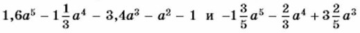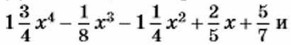 Дополнительные упражнения к главе 4 К параграфу 9734. Найдутся ли такие целые значения х, при которых значение многочлена: а) 2х2 + 6х + 3 окажется чётным числом; б) х2 + х + 2 окажется нечётным числом? 735. Расположите члены многочлена 3аx2 - 6а3х + 8а2 - х3: а) по возрастающим степеням переменной х; б) по убывающим степеням переменной а. 736. Представьте в виде многочлена: а) (-2x2 + х + 1) - (х2 - х + 7) - (4х2 + 2х + 8); б) (3а2 - а + 2) + (-3а2 + 3а - 1) - (а2 - 1); в) 2а - 3b + с - (4а + 7b + с + 3); г) 2ху - у2 + (у2 - ху) - (х2 + ху). 737. Упростите выражение: а) (1 - х + 4x3 - 8x3) + (2x3 + x2 - 6х - 3) - (5x3 + 8x2); б) (0,5а - 0,6b + 5,5) - (-0,5а + 0,45) + (1,3b - 4,5). 738. Докажите, что выражение А + В С тождественно равно выражению С - В - А, если А = 2х - 1, В = 3х + 1 и С = 5х. 739. Какой многочлен нужно вычесть ив многочлена у2 - 5у + 1, чтобы разность была тождественно равна: а) 0; б) 5; в) y2; г) 4y2 - y + 7? 740. Докажите, что при любом значении х разность многочленов