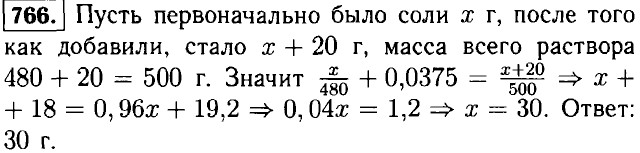 Домашние работы Дополнительные упражнения к параграфу 10 (окончание)763. Пусть кооператив должен был изготавливать по х сорочек каждый день, тогда он выпускал х + 10 сорочек в день. Значит 7 • (х + 10) = 8х ⇒ х = 70. Ответ: 70 сорочек. 764. Пусть х т пшеницы было первого сорта, тогда 1400—х второго сорта. Значит 0,98х + 0,97 • (1400 - х) = 1364 ⇒ 0,98х + 1358 - 0,97х = 1364 ⇒ 0,01х = 6 ⇒ х = 600 ⇒ 1400 - х = 800. Ответ: 600 т и 800 т. 765. Пусть бригада должна была закончить работу через t дней. Значит 80t = (80 + 10)(t -1) + 30 ⇒ 80t = 90t - 90 + 30 ⇒ 10t = 60 ⇒ t = 6 ⇒ 80t = 480. Ответ: 480 га.