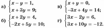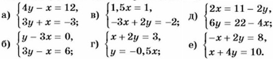 1059. Составьте какую-либо систему линейных уравнений с переменными хну, решением которой служит пара: а) х = 4, у = 1; б) х = 0, у = 3. 1060. Решите графически систему линейных уравнений: