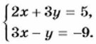 Координаты любой точки прямой AВ являются решением уравнения 2х + 3у = 5, а координаты любой точки прямой CD являются решением уравнения 3х - у = -9. Координаты точки пересечения прямых удовлетворяют как первому уравнению, так и второму, т. о. являются решением системы. Графики пересекаются в точке К(-2; 3). Значит, система имеет единственное решение: х = -2, у = 3. Применённый нами способ решения системы уравнений называется графическим. Заметим, что графический способ обычно позволяет находить решения лишь приближённо.