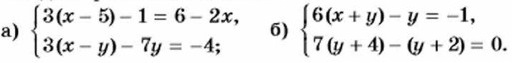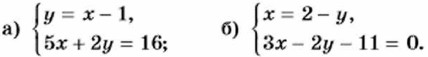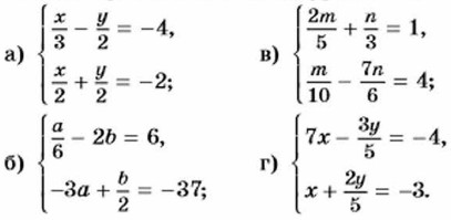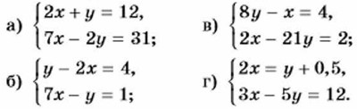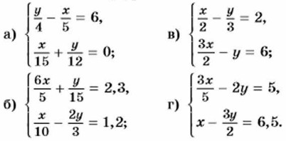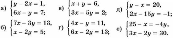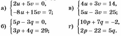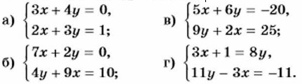 1073. Не выполняя построения, найдите координаты точки пересечения графиков уравнений: а) 7х + 4у = 23 и 8х - 10у = 19; б) 11х - 6у = 2 и -8х + 5у = 3. 1074. Найдите координаты точки пересечения графиков уравнений, не выполняя построения: а) 5х - 4у = 16 и х - 2у = 6; б) 20х - 15у = 100 и 3х - у = 6. 1075. Найдите решение системы уравнений: