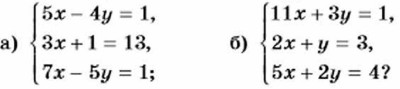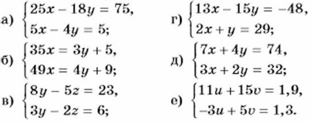 1174. Проходят ли прямые 2x + 3y = 20, 3x - 5y = 11 и x + y = 9 через одну и туже точку? 1175. Задайте формулой линейную функцию, график которой проходит через точки: а) A(1; 2) и В(-2; 3); б) М(-5; 0) и К (2; -1). 1176. (Для работы в парах.) Напишите уравнение вида у = kх + 5, график которого проходит через точки: а) М(-1; 1) и Р(4; 4); б) А(-3; 3) и B(3; -3). 1) Обсудите друг с другом ход решения задачи. 2) Распределите, кто выполняет задание а), а кто — задание б), и выполните их. 3) Проверьте друг у друга, правильно ли составлены уравнения, построив соответствующие графики. 1177. Автомобиль проделал путь за 8 ч. Сначала он шёл со скоростью 40 км/ч, а затем со скоростью 60 км/ч. Весь этот путь он мог бы пройти за то же время, если бы шёл со скоростью 45 км/ч. Сколько часов шёл автомобиль со скоростью 40 км/ч и сколько со скоростью 60 км/ч? 1178. Велосипедист ехал от пункта А до пункта В со скоростью 10 км/ч, а от пункта В до пункта С со скоростью 15 км/ч. На весь путь он затратил 5 ч. Тот же путь за то же время он мог бы проехать со скоростью 12 км/ч. Сколько часов затратил велосипедист на путь от A до В и сколько на путь от В до С? 1179. В первый день засеяли 1180. Если каждую сторону прямоугольника увеличить на 3 см, то ею площадь увеличится на 90 см2. Если же длину прямоугольника увеличить на 5 см, а ширину уменьшить на 2 см, то ею площадь увеличится на 20 см2. Найдите стороны прямоугольника. 1181. Написали два числа. Если первое число увеличить на 30%, а второе уменьшить на 10%, то их сумма увеличится на 6. Если же первое число уменьшить на 10%, а второе — на 20%, то их сумма уменьшится на 16. Какие числа были написаны? 1182. В магазине находилось два мешка с рисом одинаковой массы и один мешок с пшеном. Масса всех трёх мешков составляла 160 кг. После того как из каждою мешка с рисом продали 20% риса, а из мешка с пшеном — 25% пшена, масса крупы в мешках составила 125 кг. Сколько килограммов риса и пшена было в каждом мешке первоначально? 1183. За 8 дней работы на первом станке и 5 дней работы на втором было изготовлено 235 деталей. В результате усовершенствования производительность первого станка возросла на 15%, а второго — на 20%. Теперь за 2 дня работы на первом станке и 3 дня на втором можно изготовить 100 деталей. Сколько деталей в день изготовляли раньше на каждом станке?