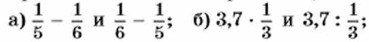 106. Упростите выражение и найдите его значение: а) 0,6(р - 3) + р + 2 при р = 0,5; б) 4(0,5q - 6) - 14q + 21 при 107. Составьте выражение но условию задачи и упростите его: а) У Игоря 3 альбома с марками. В первом альбоме а марок, во втором — на 15 марок больше, чем в первом, а в третьем — втрое больше, чем во втором. Сколько марок в трёх альбомах? б) Пётр приобрёл 8 билетов лотереи «Надежда» и б билетов лотереи «Удача». Билет лотереи «Удача» стоил ар., а лотереи «Надежда» был на 10% дороже. Найдите стоимость покупки. Упражнения для повторения 108. Сравните значения выражений, не вычисляя их: