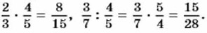 При сложении и вычитании дробей с разными знаменателями сначала их приводят к общему знаменателю. 10. Чтобы перемножить две дроби, надо перемножить отдельно их числители и знаменатели и первое произведение сделать числителем, а второе — знаменателем. Чтобы разделить одну дробь на другую, надо делимое умножить на дробь, обратную делителю. Например,