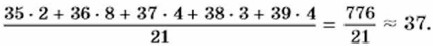 § 4. Статистические характеристики Среднее арифметическое, размах и мода (продолжение)Моду ряда данных обычно находят, когда хотят выявить некоторый типичный показатель. Например, если изучаются данные о размерах мужских сорочек, проданных в определённый день в универмаге, то удобно воспользоваться таким показателем, как мода, который характеризует размер, пользующийся наибольшим спросом. Среднее арифметическое в этом случае не даёт полезной информации. Мода является наиболее приемлемым показателем при выявлении расфасовки некоторого товара, которой отдают предпочтение покупатели, цены на товар данного вида, распространённой на рынке, и т. п. Рассмотрим ещё пример. Пусть, проведя учёт деталей, изготовленных за смену рабочими одной бригады, получили такой ряд данных: 36, 35, 35, 36, 37, 37, 36, 37, 38, 36, 36 36, 39, 39, 37, 39, 38, 38, 36, 39, 36. Найдём для него среднее арифметическое, размах и моду. Для этого удобно предварительно составить из полученных данных упорядоченныи ряд чисел, т. е. такой ряд, в котором каждое последующее число не меньше (или не больше) предыдущего. Получим 35, 35, 36, 36, 36, 36, 36, 36, 36, 36, 37, 37, 37, 37, 38, 38, 38, 39, 39, 39, 39. Вычислим среднее арифметическое:
