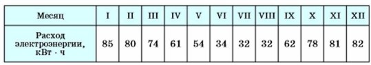 168. Найдите среднее арифметическое, размах и моду ряда чисел: а) 32, 26, 18, 26, 15, 21, 26; б) 21, 18,5, 25,3, 18,5, 17,9; в) 67,1, 68,2, 67,1, 70,4, 68,2; г) 0,6, 0,8, 0,5, 0,9, 1,1. 169. Найдите среднее арифметическое, размах и моду ряда чисел: а) 16, 22, 16, 13, 20, 17; б) -21, -33, -35, -19, -20, -22; в) 61, 64, 64, 83, 61, 71, 70; г) -4, -6, 0, 4, 0, 6, 8, -12. 170. Как могут измениться размах и мода ряда чисел, если: а) дополнить его числом, превосходящим все остальные; б) вычеркнуть из него число, меньшее всех остальных; в) дополнить его числом, равным наибольшему из чисел? 171. В таблице показан расход электроэнергии некоторой семьёй в течение года: