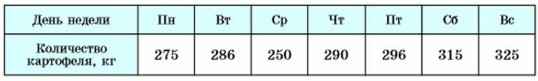 Найдите средний ежемесячный расход электроэнергии этой семьёй. 172. В таблице приведены данные о продаже в течение недели картофеля, завезённого в овощную палатку: