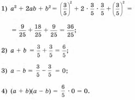 б) Аналогично, соблюдая порядок действий, последовательно находим: 1) а2 + 2аb + b2 = 3,72 + 2 • 3,7 • (-1,7) + (-1,7)2 = 13,69 - 12,58 + 2,89 = 4;