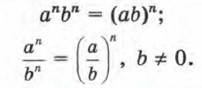 Обе эти формулы применяют как слева направо, так и справа налево. Их также можно оформить в виде правил действий над степенями, тогда к трём правилам из § 17 добавятся ещё два: