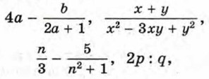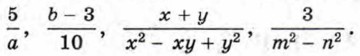 § 1. Рациональне дроби и их свойства. Рациональные выраженияВ курсе алгебры 7 класса мы занимались преобразованиями целых выражений, т. е. выражений, составленных из чисел и переменных с помощью действий сложения, вычитания и умножения, а также деления на число, отличное от нуля. Так, целыми являются выражения