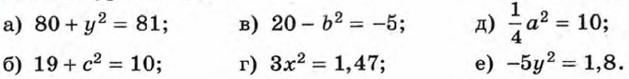 Упражнения319. Имеет ли корни уравнение: а) х2 = 81; б) х2 = 18; в) х2 = 0; г) х2 = -25? 320. Решите уравнение: