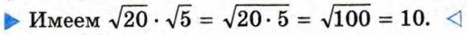 Этими тождествами пользуются при умножении и делении арифметических квадратных корней. Пример 4. Найдём значение произведения √20 • √5.