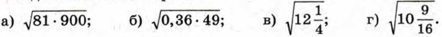 § 6. Свойства арифметического квадратного корня Квадратный корень из произведения и дроби (продолжение)Пример 3. Найдём значение выражения