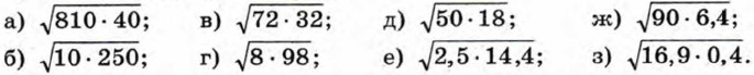 378. Представьте выражение в виде произведения корней: a) √15; б) √21; в) √7a; г) √3c. 379. Представьте выражение в виде частного корней: